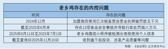 合规运营系企业必需恪守的一个准绳,企业只要依法合规运营方能行稳致远。然而,截至2025年6月末,老乡鸡存正在多项食物平安变乱并遭到行政惩罚。不只如斯,截至查询日2025年11月10日,老乡鸡收到逾千起赞扬,涉及产质量量等问题。