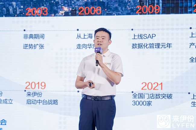 ▲来伊份第七届合伙人大会开幕6月26日,来伊份第七届合伙人大会在上海盛大启幕。在这场以“万家灯火 千帆竞发”为主题的行业盛会上,来伊份创始人、董事长施永雷以及各业务板块负责人分别围绕品牌、产品以及企业的发展与机遇等方面进行了分享,并在与现场来自全国各地超200位加盟商代表的对话中着重强调了“万家灯火”对于来伊份集团的重要战略意义。合伙人大会的召开,为来伊份未来的发展奠定了基调,也为所有来伊份的合作伙伴指明了发展的方向。推动“万家灯火”,共探市场新机遇品牌的发展要经历市场不断的洗礼,而业态的生命周期,则直观地反映出品牌在市场中的生命力。在大会开幕致辞中,董事长施永雷回顾了25年来的发展历程,他表示从1999年第一家店开始,到现在的超3700家店,来伊份的商业模式清晰且品牌坚韧。